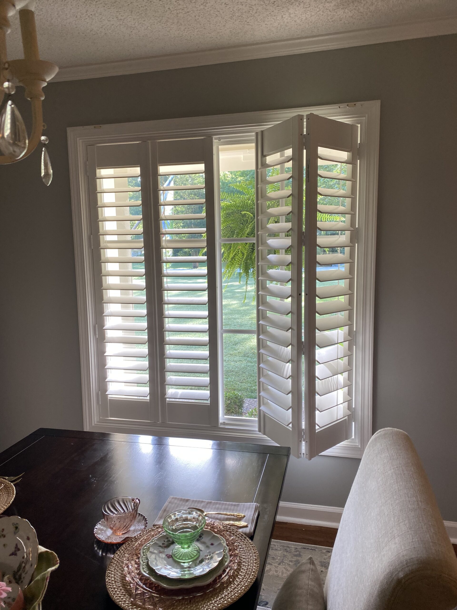 - Our latest style of double-hung shutters offers top and bottom panels that hang in the same window but operate separately. Double-hung shutters allow clients to open the top for daylight, while closing the bottom for privacy. Other style options include standard, standard with divider rails, and café panels.